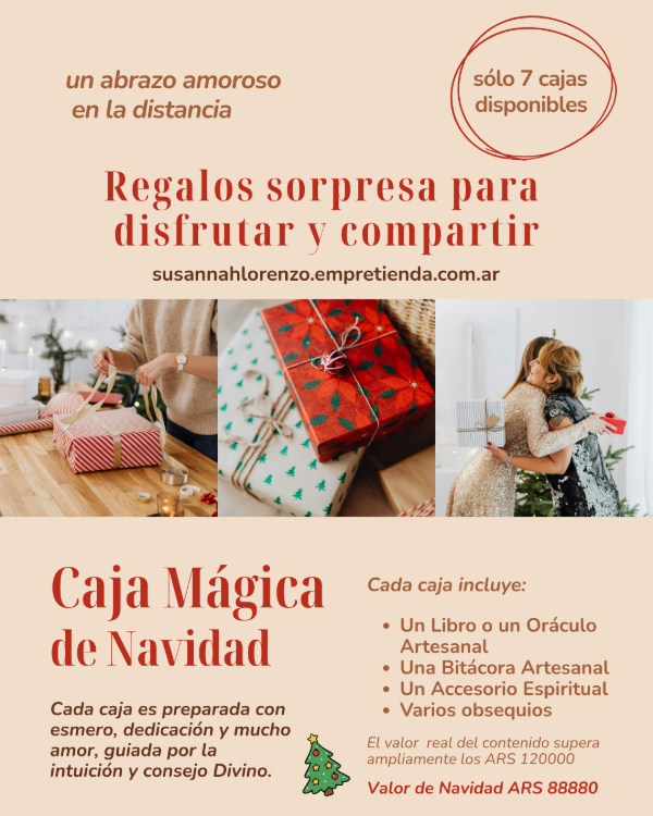 Cuando eliges comprar una de mis Cajas Mágicas de Navidad, nos abrazamos y nos bendecimos en la distancia; a través de un objeto o publicación única artesanal, recibes un poco de mi alma y mi corazón.
